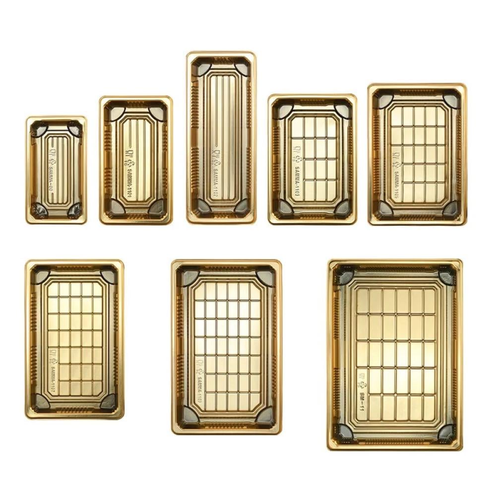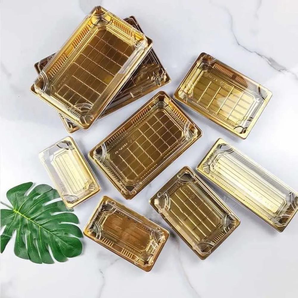 صحون بلاستيكية فاخرة بقاعدة ذهبية مع غطاء شفاف